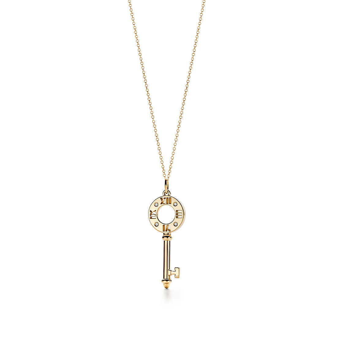 Brilliant beacons of optimism and hope, Tiffany Keys are radiant symbols of a bright future. Diamonds accentuate this pendant’s striking Roman numerals. –18k gold with diamonds