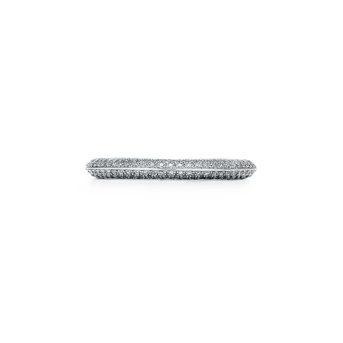 Band ring in platinum with pavé diamonds. Carat total weight .42.