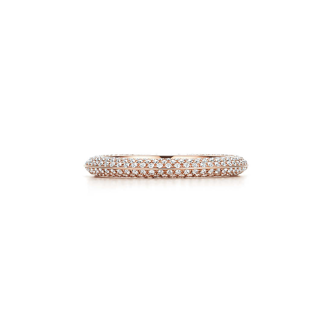 Band ring in 18k rose gold with pavé diamonds. Carat total weight .42.