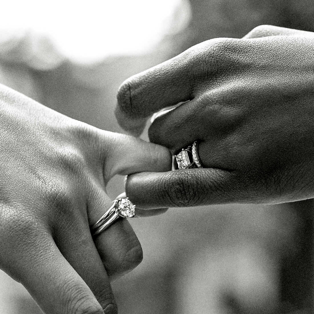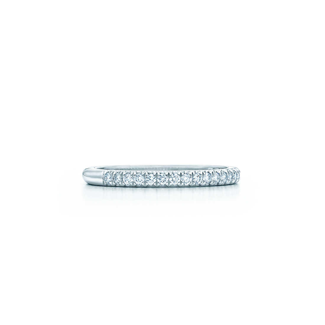 Band ring in platinum with a half circle of round brilliant diamonds. Carat total weight .17.