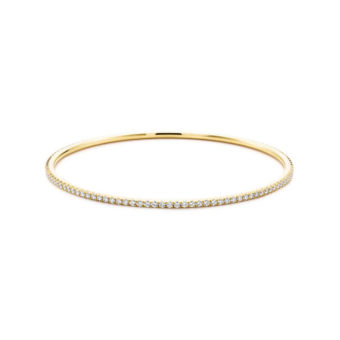 Streamlined and modern, the Tiffany Metro collectsion twinkles like a nighttime city skyline. Dazzling diamonds trace this classic bangle.