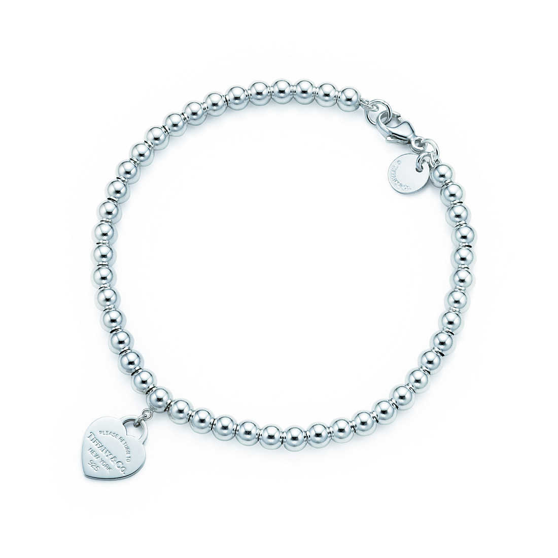 - Mini heart tag with pink enamel finish on a sterling silver bead bracelet