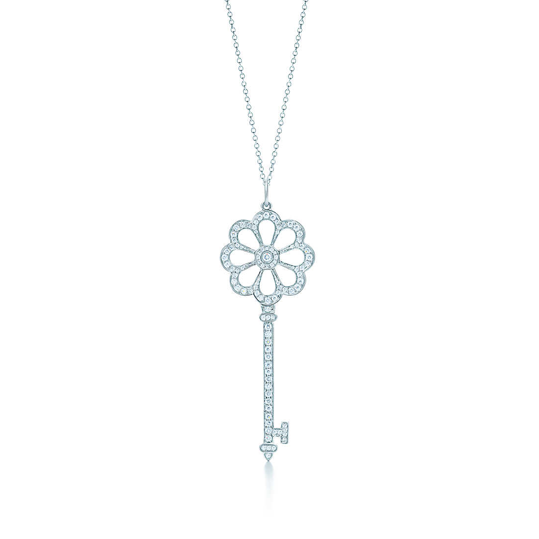 Key in platinum and 18k rose gold. 1.75″ long. Carat total weight .26. Key and chain sold separately.