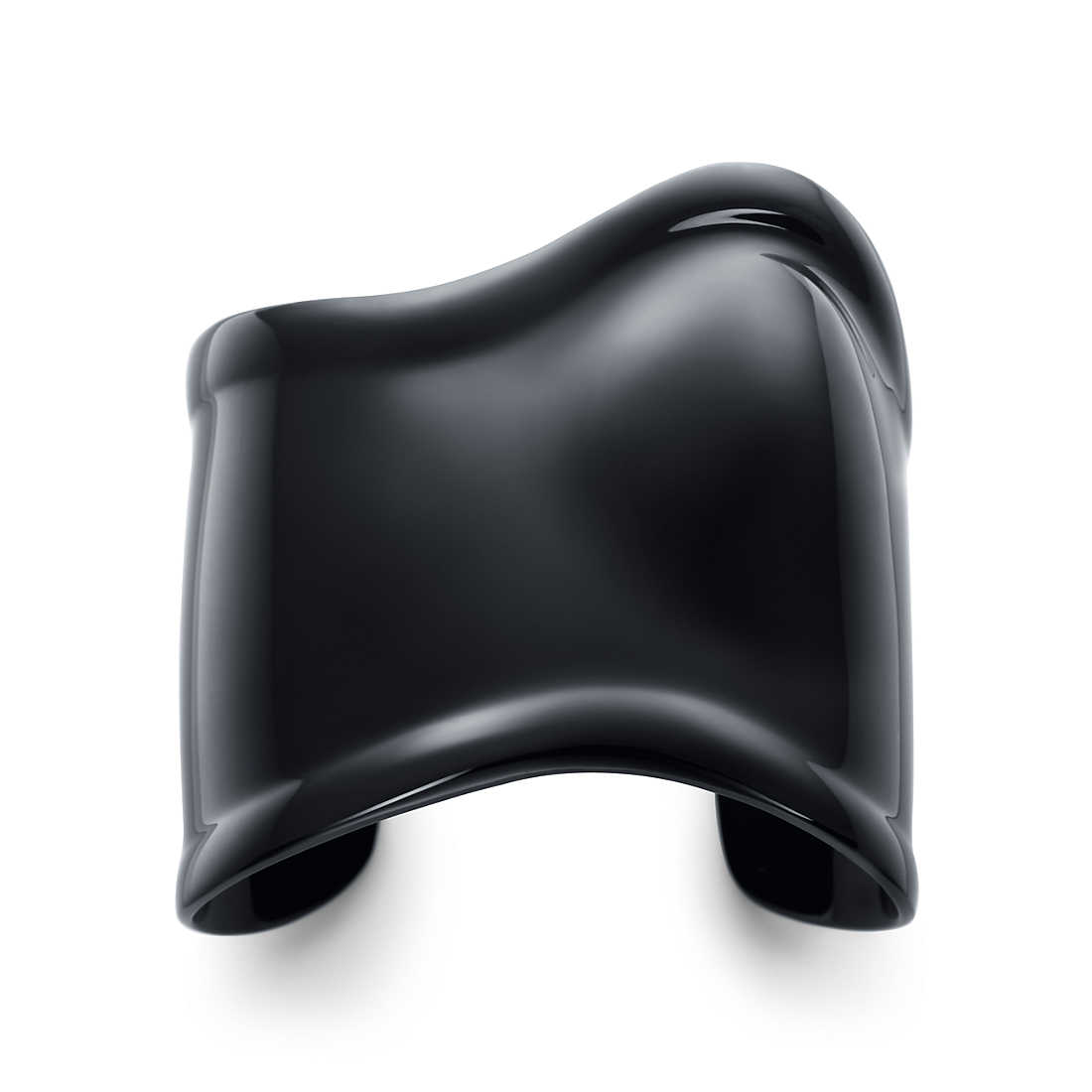 The sublime asymmetry and sensuous contours have an ergonomic quality that makes them one with the body. Cuff with black finish over copper. Size medium, for the right wrist. Original designs copyrighted by Elsa Peretti.
