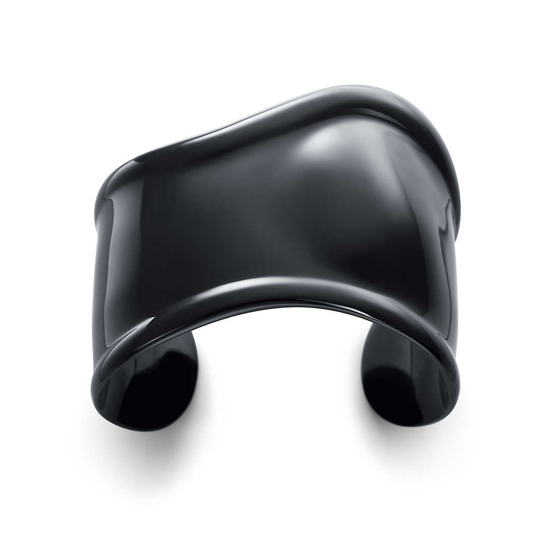 The sublime asymmetry and sensuous contours have an ergonomic quality that makes them one with the body. Cuff with black finish over copper. Size medium, for the right wrist. Original designs copyrighted by Elsa Peretti.
