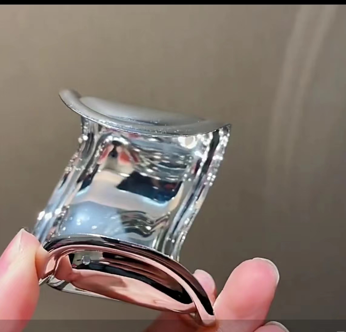 The sublime asymmetry and sensuous contours have an ergonomic quality that makes them one with the body. Cuff in sterling silver. Size medium, for the left wrist. Original designs copyrighted by Elsa Peretti.