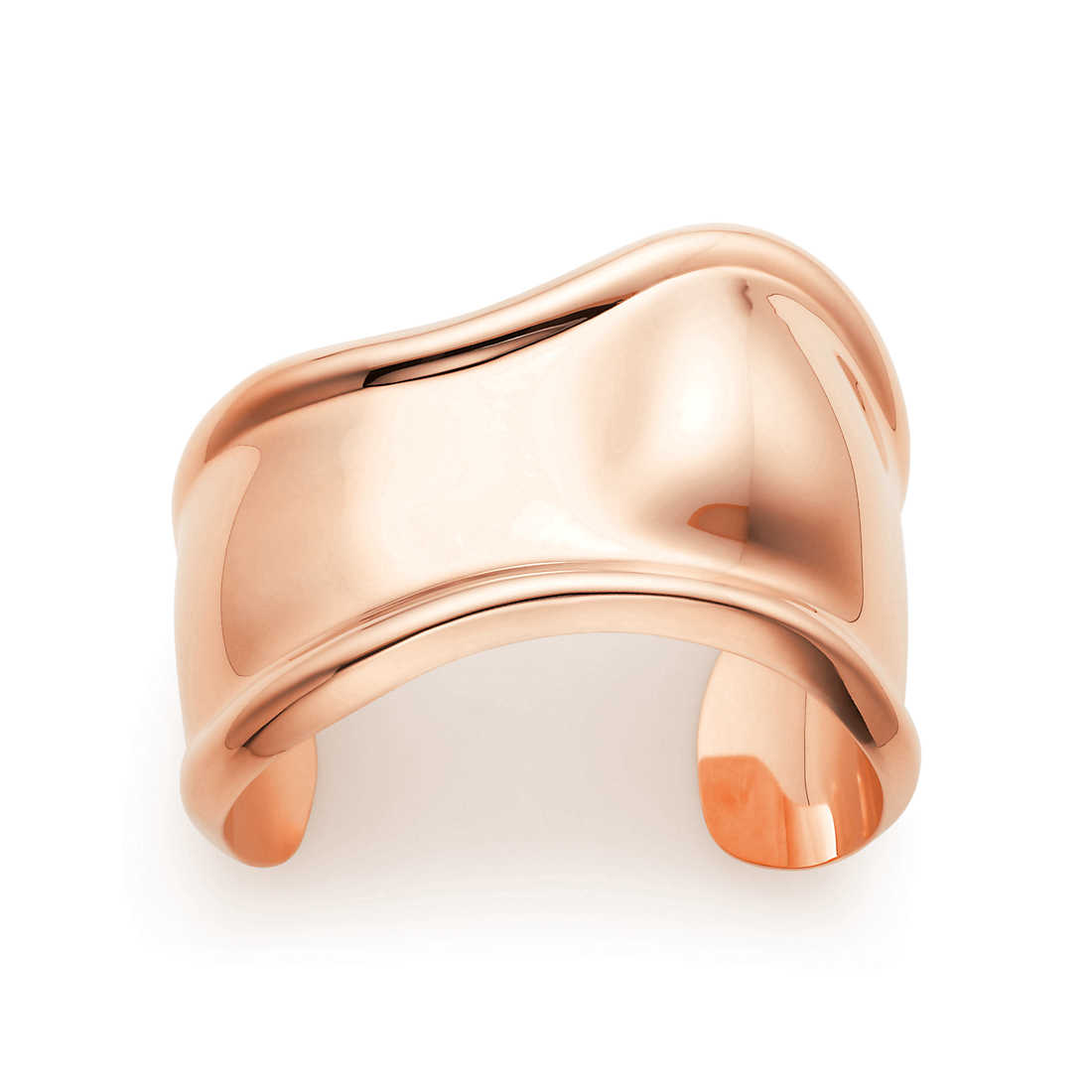 The sublime asymmetry and sensuous contours have an ergonomic quality that makes them one with the body. Cuff in 18k rose gold. Size medium, for the right wrist. Original designs copyrighted by Elsa Peretti.