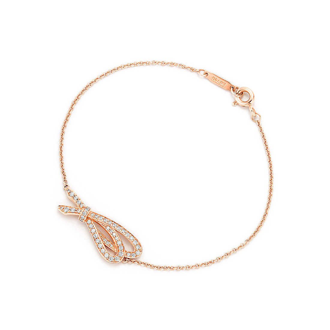 Evocative of a slender thread one might tie around one’s finger to remember something—or someone—Tiffany Bow is a charming symbol of our most important ties. Beautifully feminine with a modern elegance, this asymmetrical bow is comprised of intricate, hand-set diamonds.