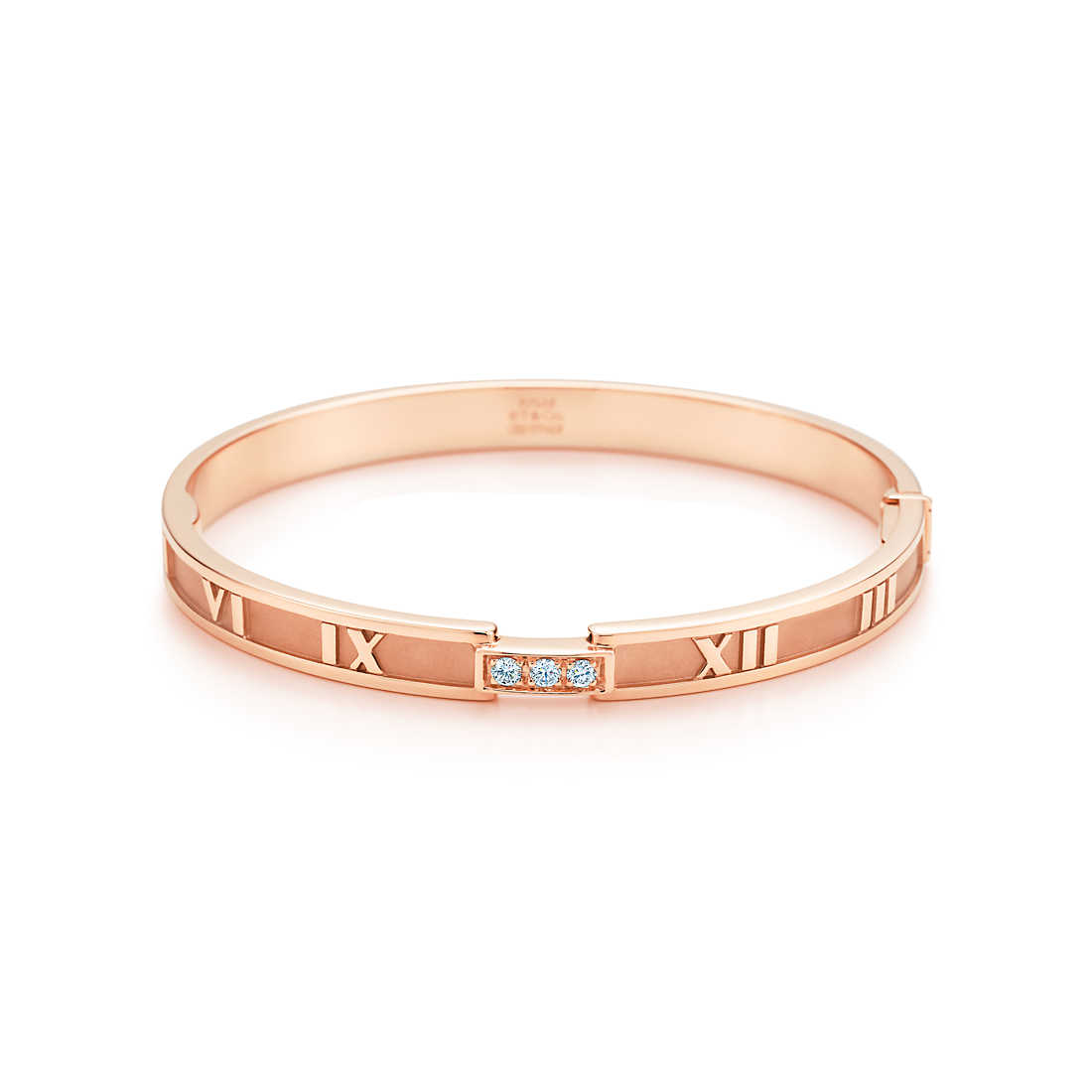 Streamlined and modern, the Atlas collectsion shines with graphic sophistication and bold simplicity. Dazzling diamonds complement the strong lines of this bangle’s numeral motif.