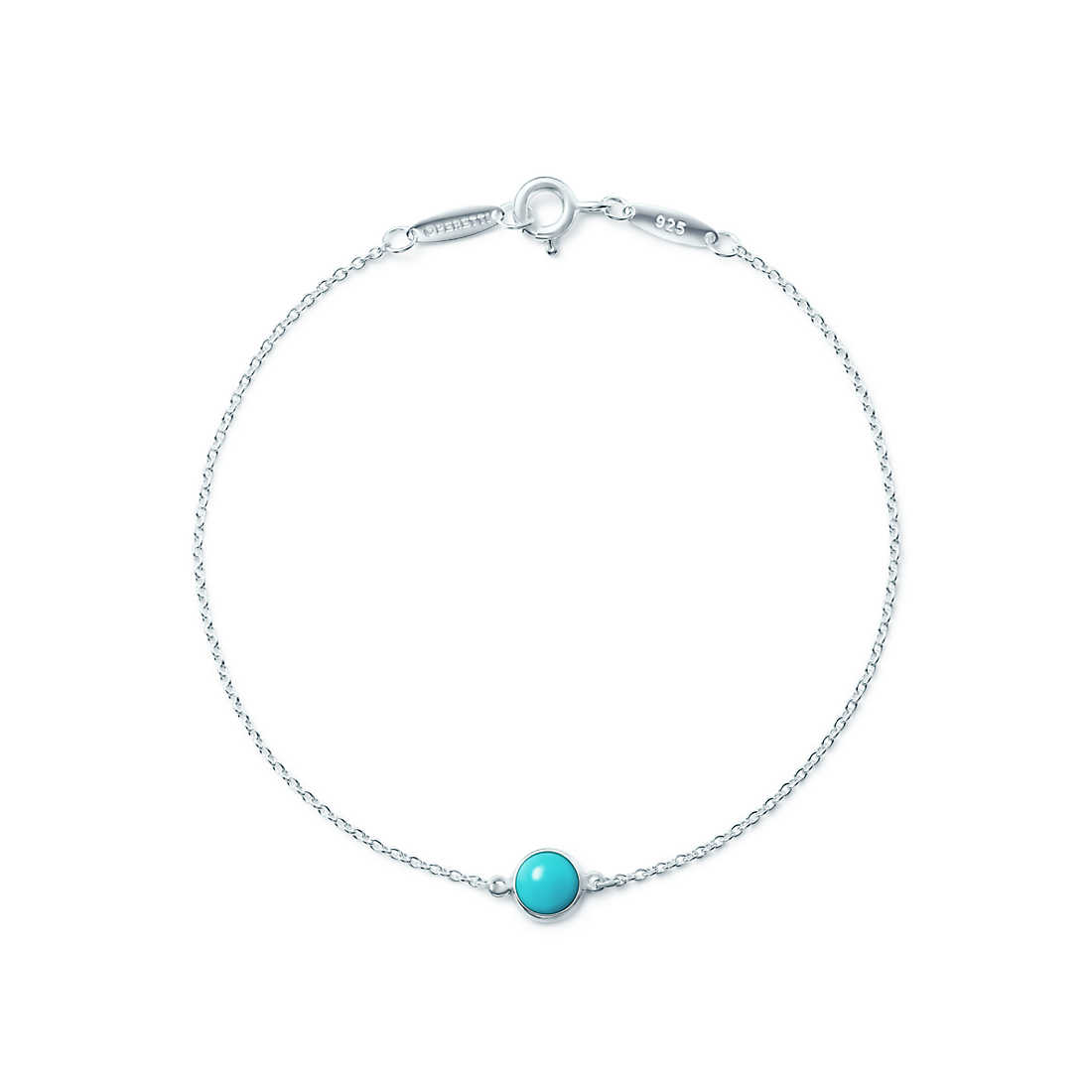 Bracelet in sterling silver with a turquoise cabochon. 7″ long. Original designs copyrighted by Elsa Peretti.