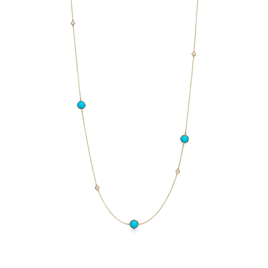 Necklace in 18k gold with turquoise cabochons and diamonds.