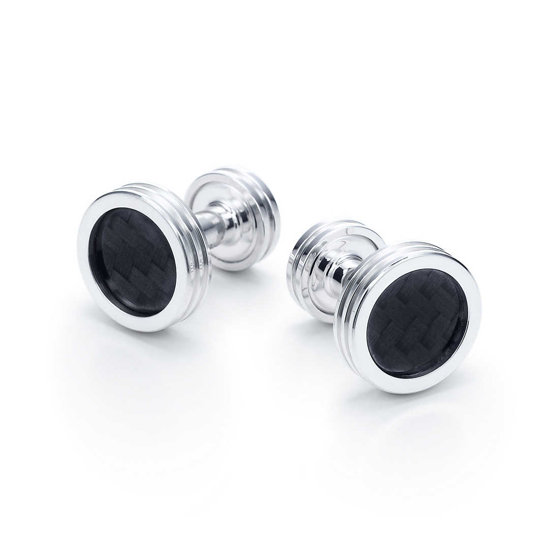 Sophisticated. Modern. Urbane. Cuff links in sterling silver with carbon fiber. Original designs copyrighted by Paloma Picasso.