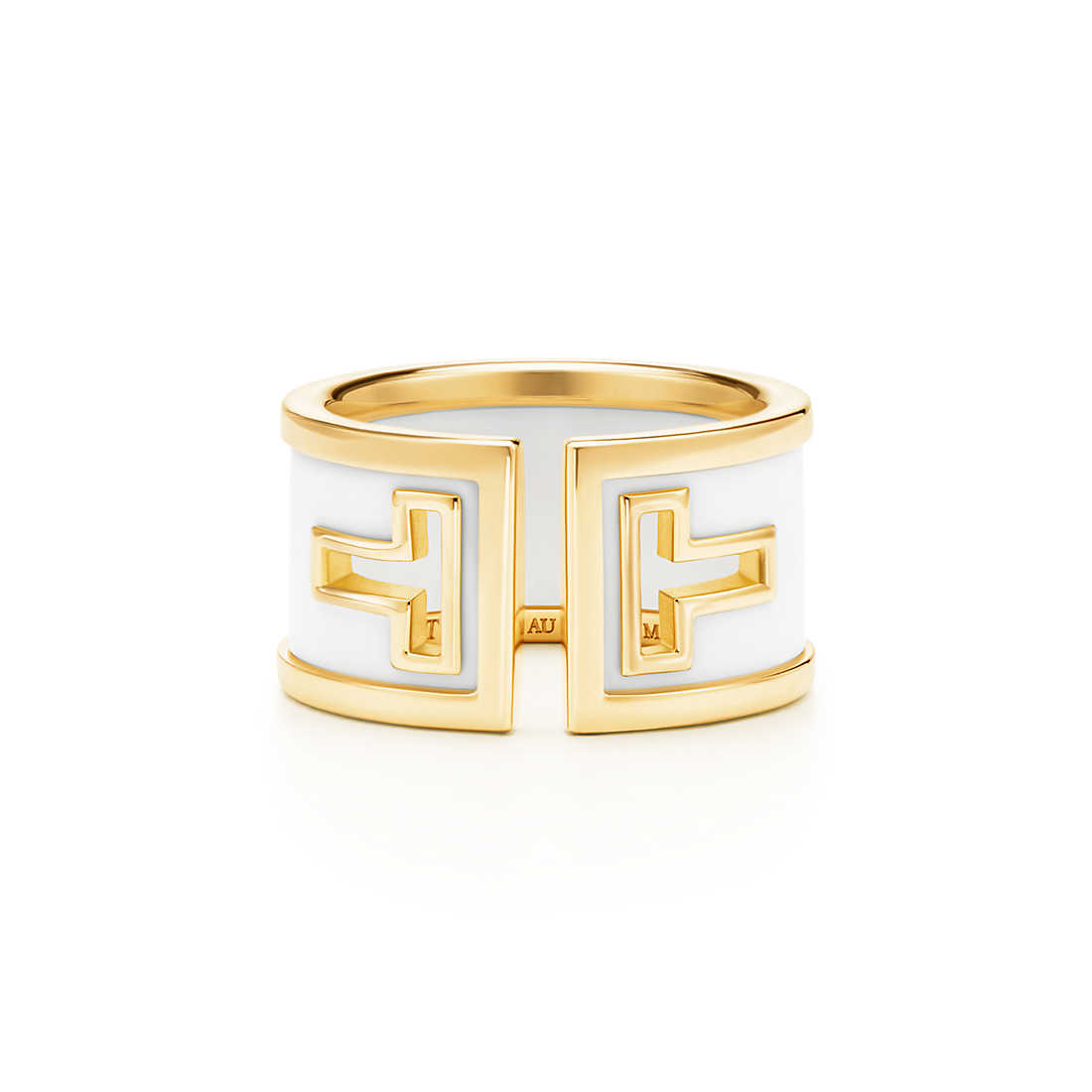Graphic angles and clean lines blend to create the beautiful claritys of the Tiffany T collectsion. This ring with its bold cutouts embodies timeless sophistication.