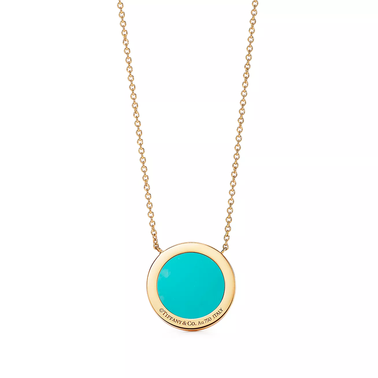 Traced with scintillating diamonds, this circle pendant features turquoise, one of the first stones used in jewellery design and a favourite of Tiffany designers for over a century. The natural formation of the stone creates subtle differences in appearance, ensuring each piece is as unique as its wearer. As multifaceted as it is iconic, the Tiffany T collectsion is a tangible reminder of the connections we feel but can’t always see. Showcase your personal style by pairing this pendant with other Tiffany designs for a bold look.