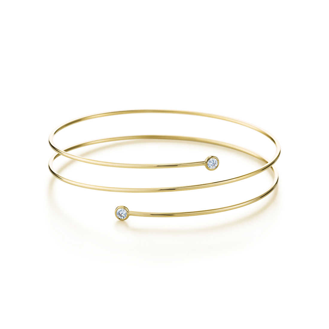 Bracelet in 18k gold with round brilliant diamonds. Fits wrists up to 7″ in circumference. Carat total weight .23. Original designs copyrighted by Elsa Peretti.
