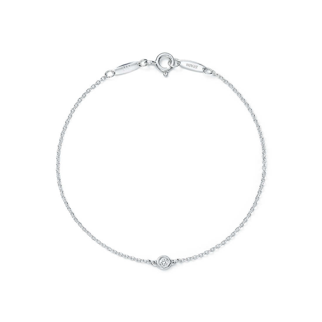 Tiffany round diamonds catch the light and make it dance. Bracelet in sterling silver with a round brilliant diamond. 7″ long. Carat weight .05. Original designs copyrighted by Elsa Peretti.