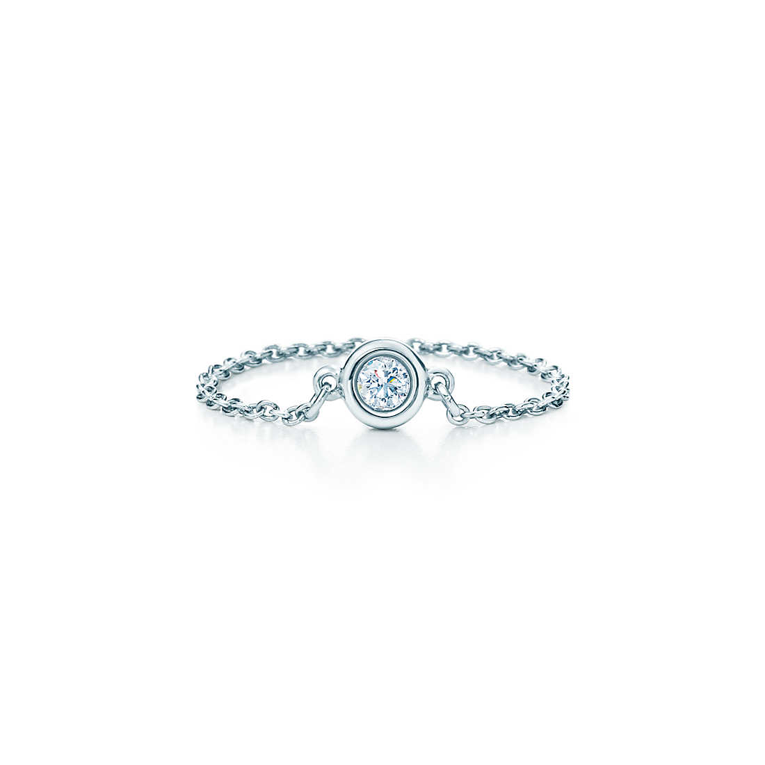 Tiffany round diamonds catch the light and make it dance. Ring in platinum with a round brilliant diamond. Carat weight .07. Original designs copyrighted by Elsa Peretti.