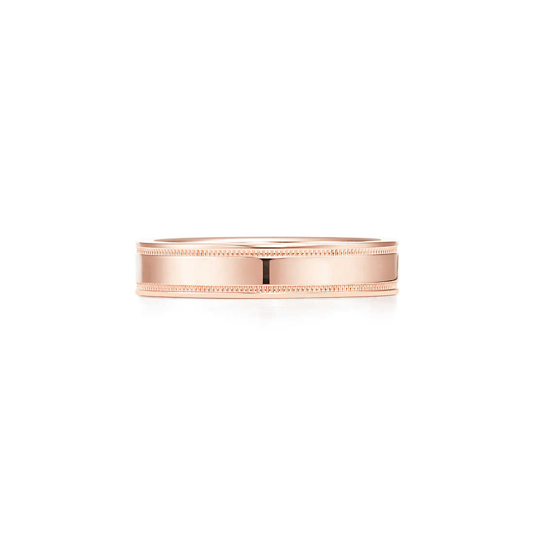 Double milgrain wedding band in 18k rose gold. 4 mm wide.
