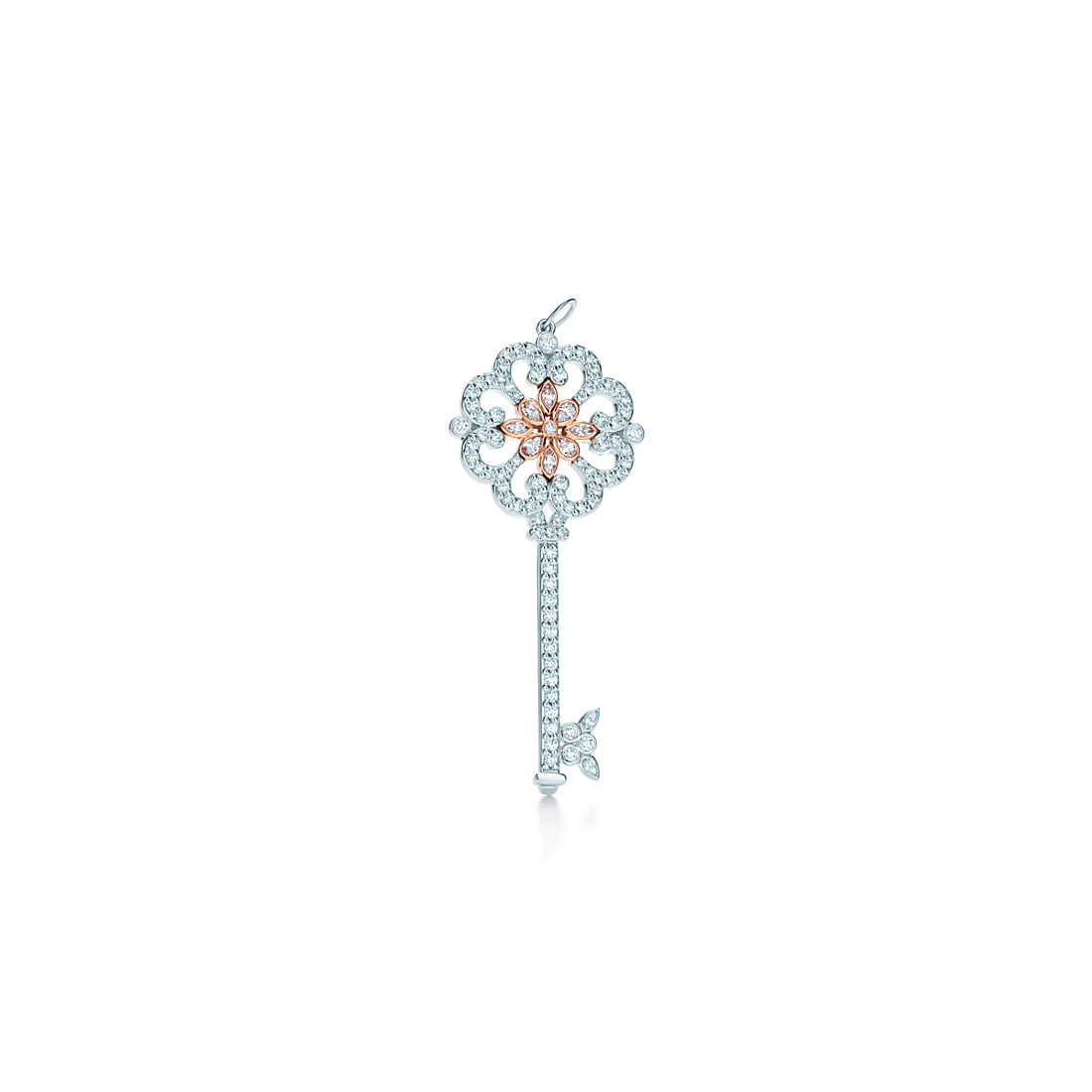 Diamonds mesmerize with a pure, dazzling light in this magnificent platinum and 18k rose gold key, which conjures up visions of secret gardens and grand estates. 2″ long. Key and chain sold separately. Marquise diamonds, carat total weight .12; pear-shaped diamonds, carat total weight .24; round brilliant diamonds, carat total weight .68.