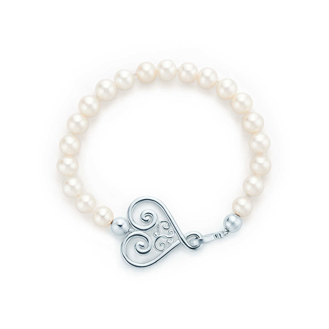 These intricate designs recall Venetian cast-iron window gates. Of sterling silver and freshwater cultured pearls. Size medium, fits wrists up to 6.25″ in circumference. Pearls, 6-7 mm. Original designs copyrighted by Paloma Picasso.
