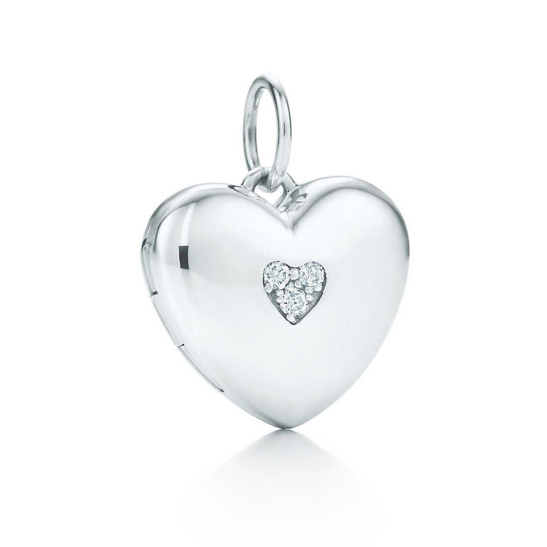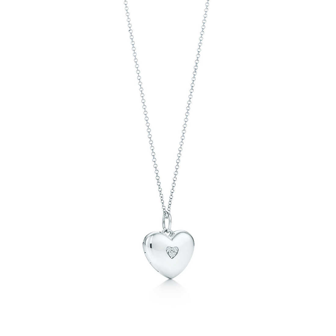 Locket in sterling silver with round brilliant diamonds. Size small. On a chain. Locket and chain sold separately.