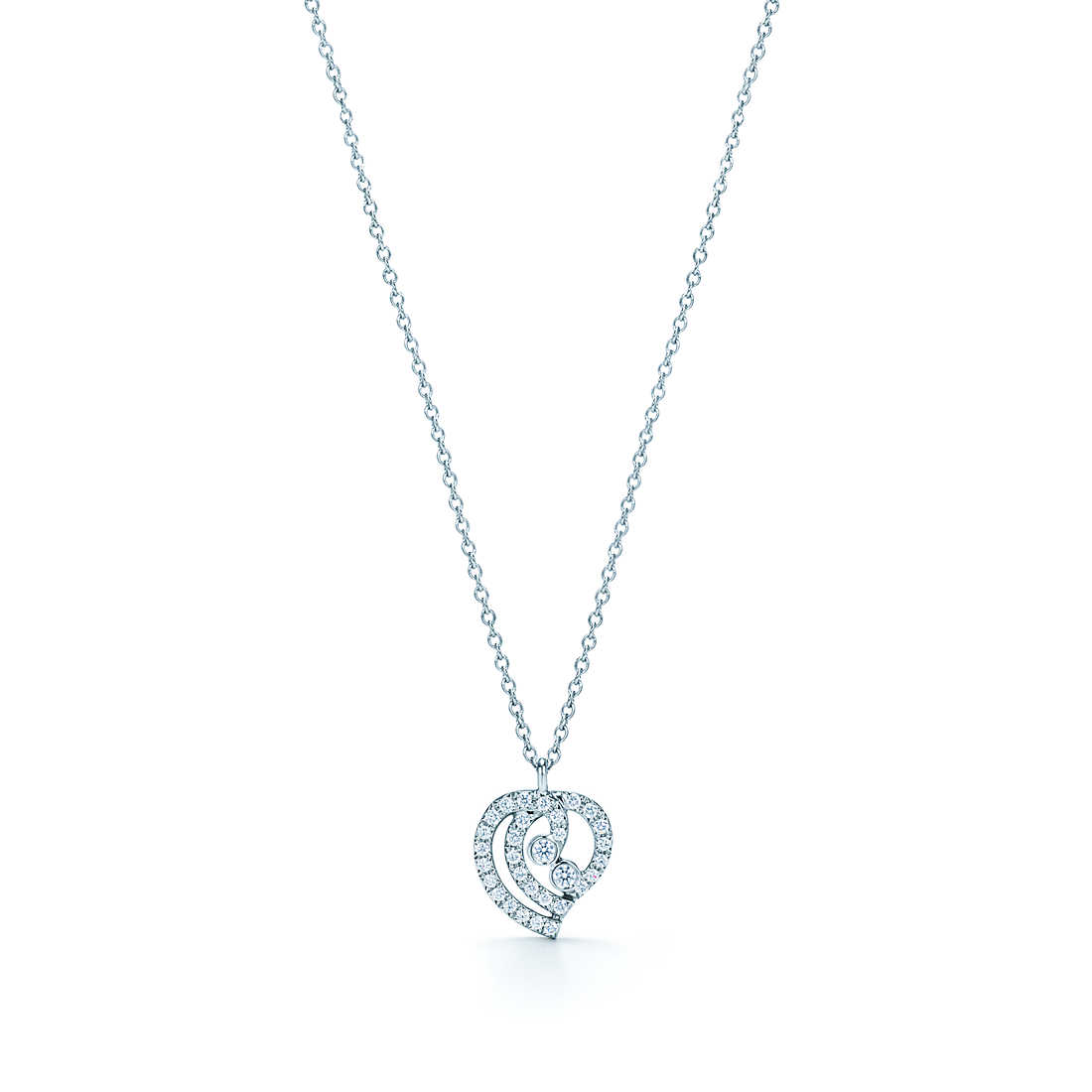 In platinum with round brilliant diamonds. Size small. On a 16″ chain. Carat total weight .11.