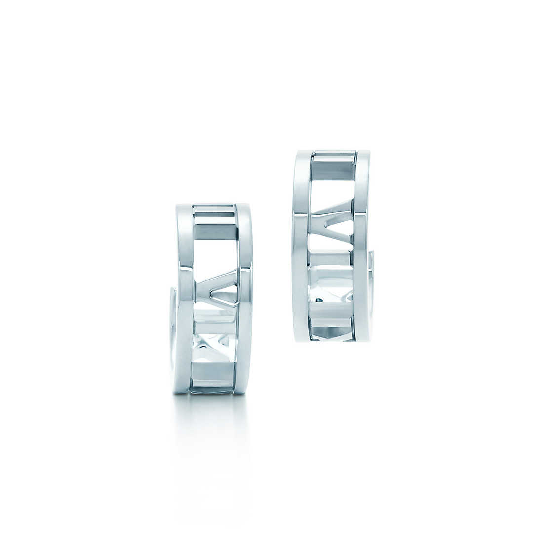 Strong lines meet striking numerals in a contemporary design that honours a Tiffany icon. Hoop earrings in sterling silver. Size mini.