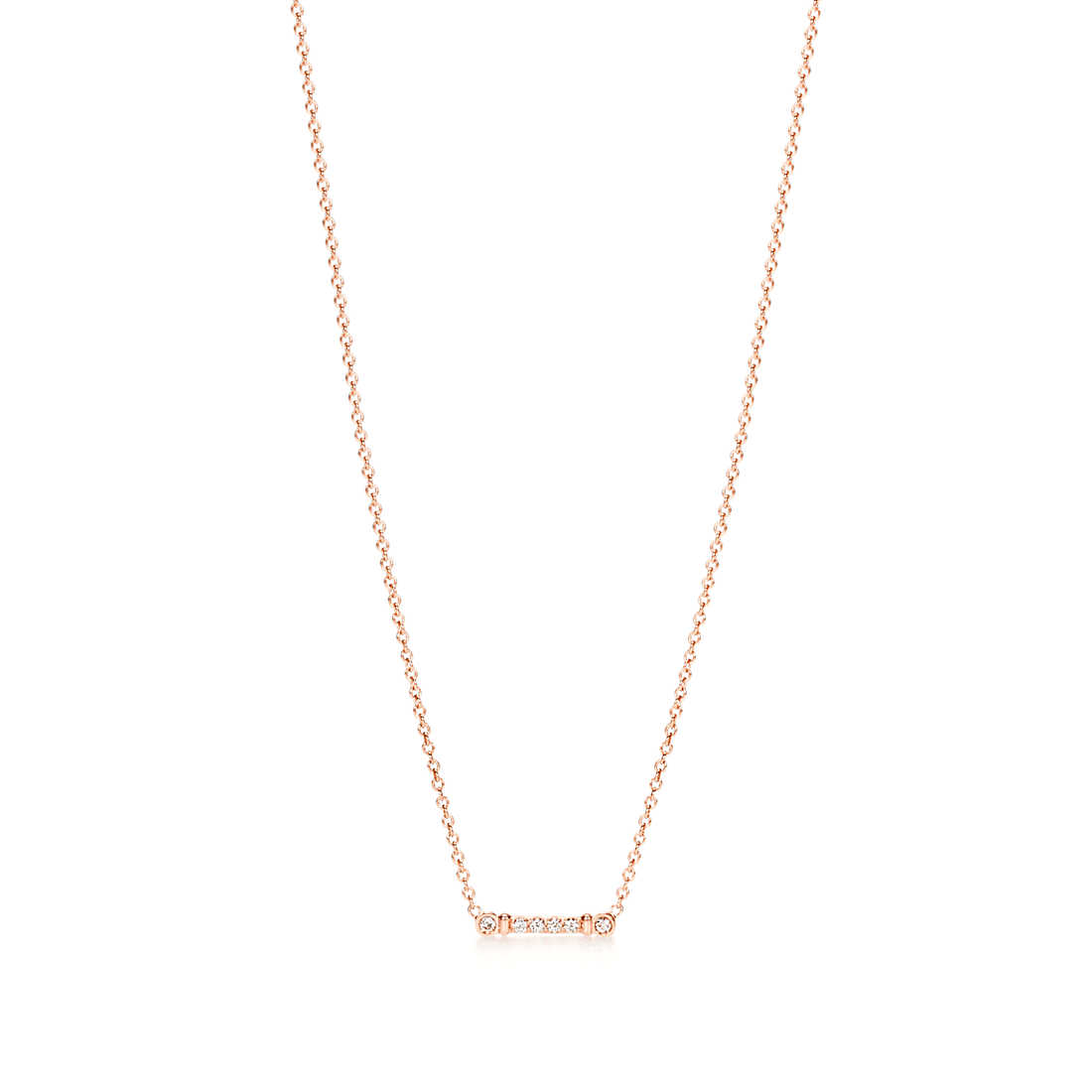 - 18k rose gold with round brilliant diamonds:On a 16″ chain