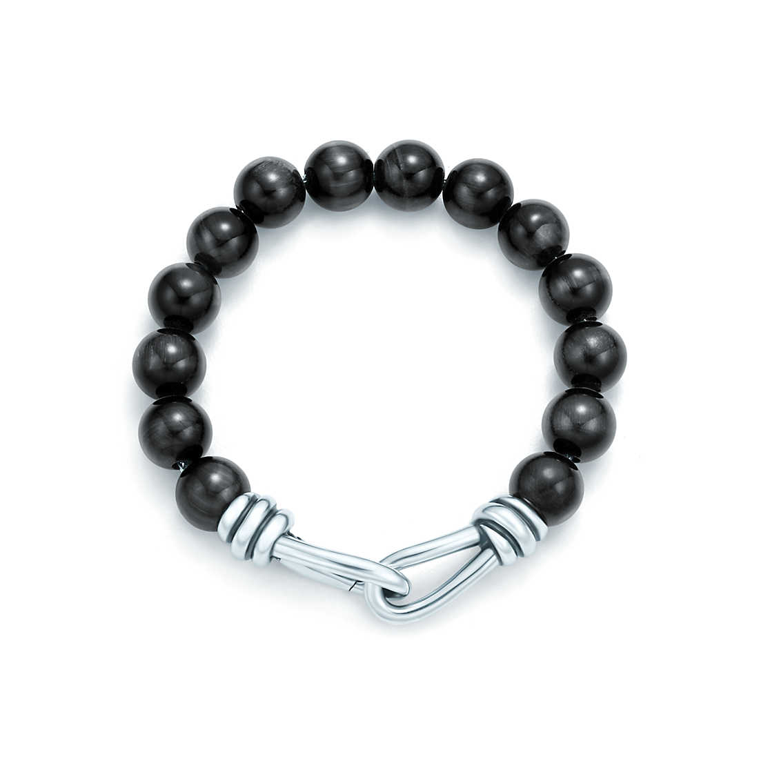 Paloma’s sleek design for men. Bracelet of falcon’s eye beads and sterling silver. Size extra large, 8.5″ long. Original designs copyrighted by Paloma Picasso.