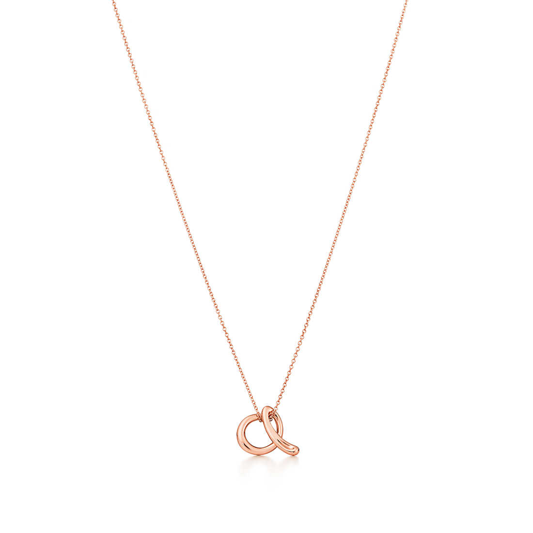 All the letters of the alphabet, distinguished by the Peretti touch. Pendant in 18k rose gold. Size mini, on a 16″ chain. Original designs copyrighted by Elsa Peretti.