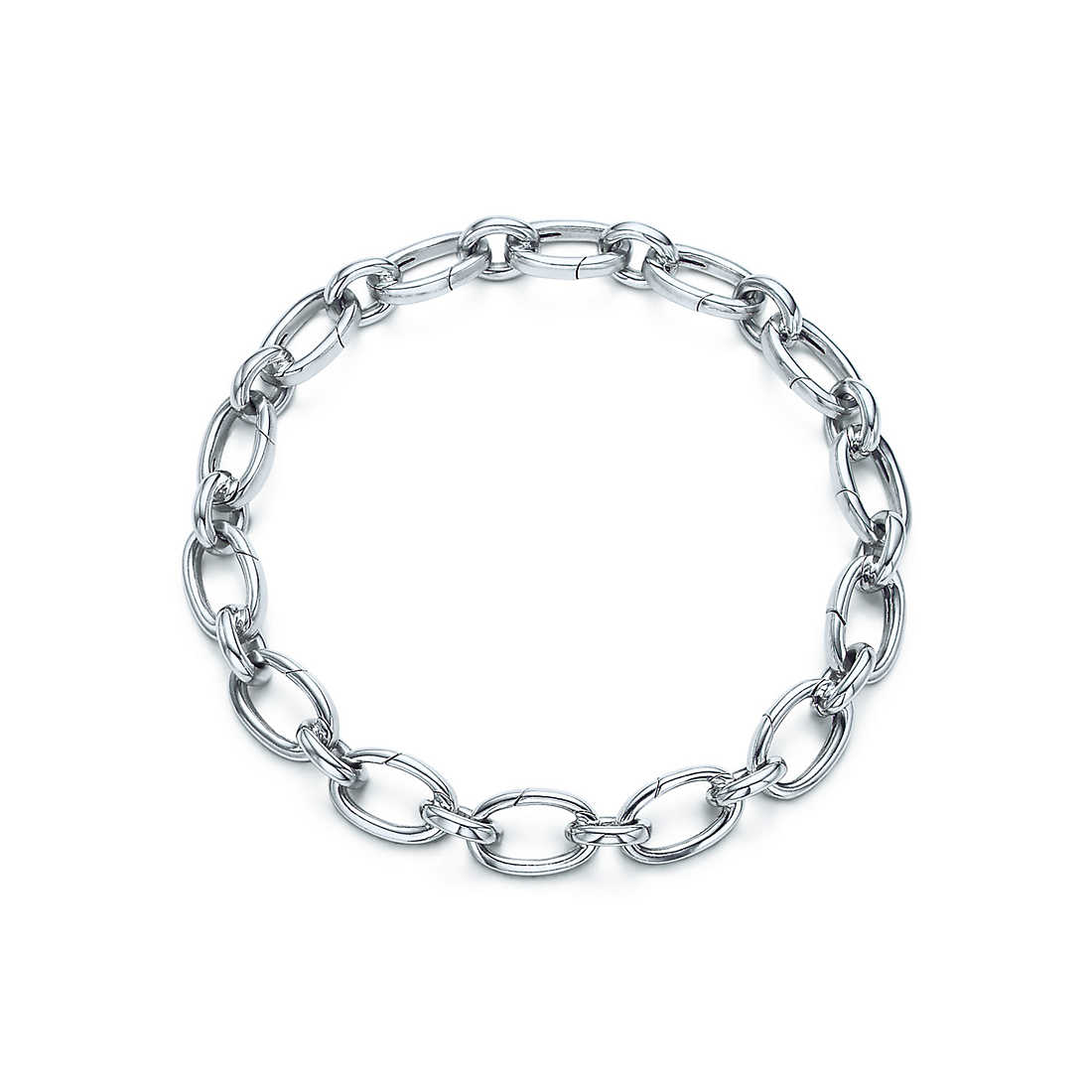 Link clasp bracelet in 18k white gold, 7.5″ long. Links open and close.