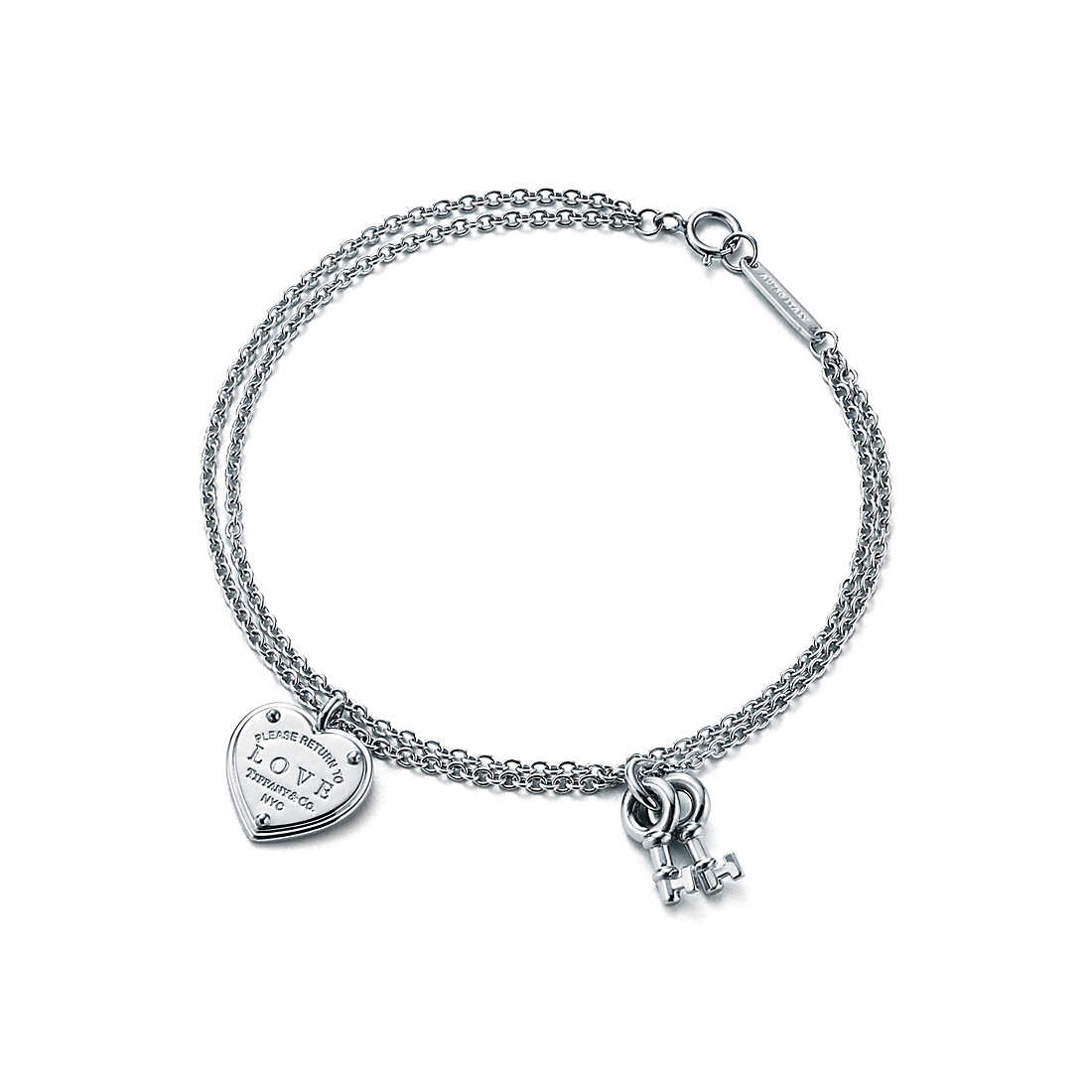 Inspired by the iconic key ring first introduced in 1969, the Return to Tiffany collectsion is a classic reinvented. Heart and key charms add delicate detail to this timeless bracelet.