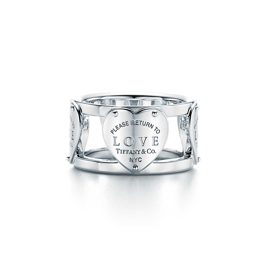 Inspired by the iconic key ring first introduced in 1969, the Return to Tiffany collectsion is a classic reinvented. Bold and timeless, this ring features a stunning heart motif.