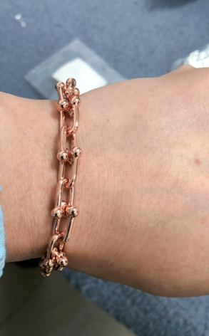 Tiffany City HardWear is elegantly subversive and captures the spirit of the women of New York City. This collectsion’s iconic gauge links form this sleek bracelet.