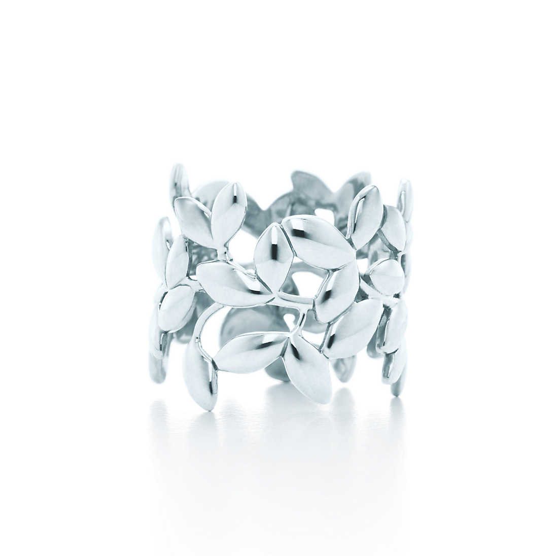 With beautifully sculpted leaves in sterling silver, Paloma honours the olive branch, a symbol of peace and abundance. Band ring in sterling silver. Original designs copyrighted by Paloma Picasso.