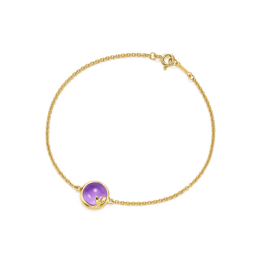 A beautiful tribute to the olive branch, a symbol of peace and abundance. Bracelet in 18k gold with an amethyst. Size medium, 7″ long. Carat weight 1.50. Original designs copyrighted by Paloma Picasso.