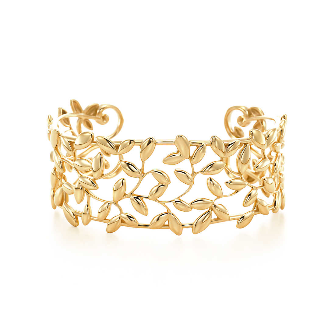 Inspired by the olive branch, a symbol of peace and abundance. Narrow cuff in 18k gold. Size medium. Original designs copyrighted by Paloma Picasso.
