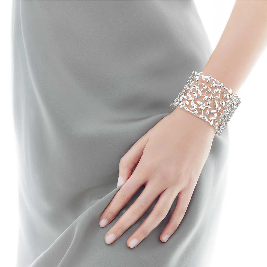 Inspired by the olive branch, a symbol of peace and abundance. Cuff in sterling silver. Size medium. Original designs copyrighted by Paloma Picasso.