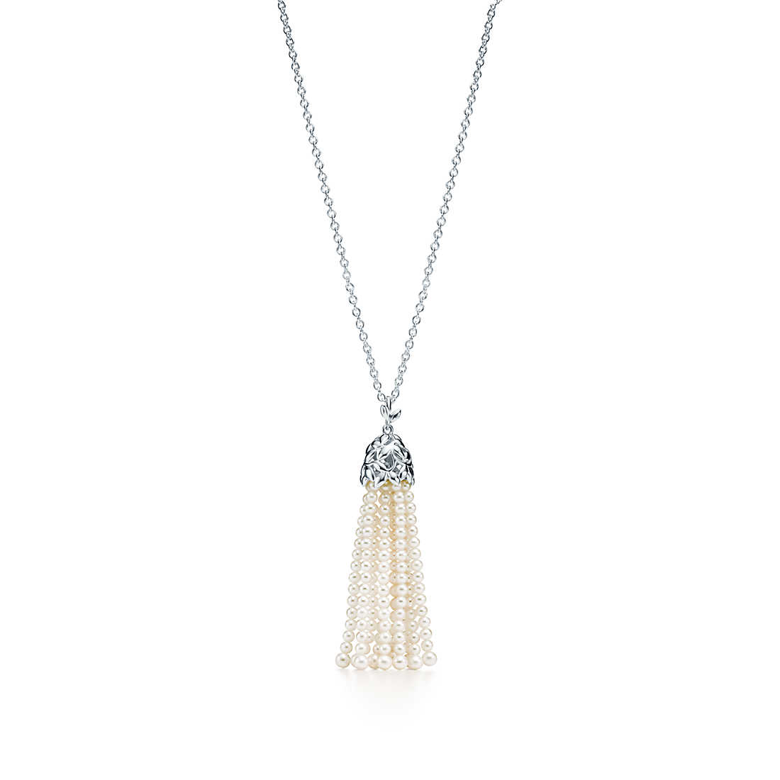 A beautiful tribute to the olive branch, a symbol of peace and abundance. Necklace in sterling silver with freshwater cultured pearls. Pearls, 4 x 5 mm. Size small, 24″ long. Original designs copyrighted by Paloma Picasso.