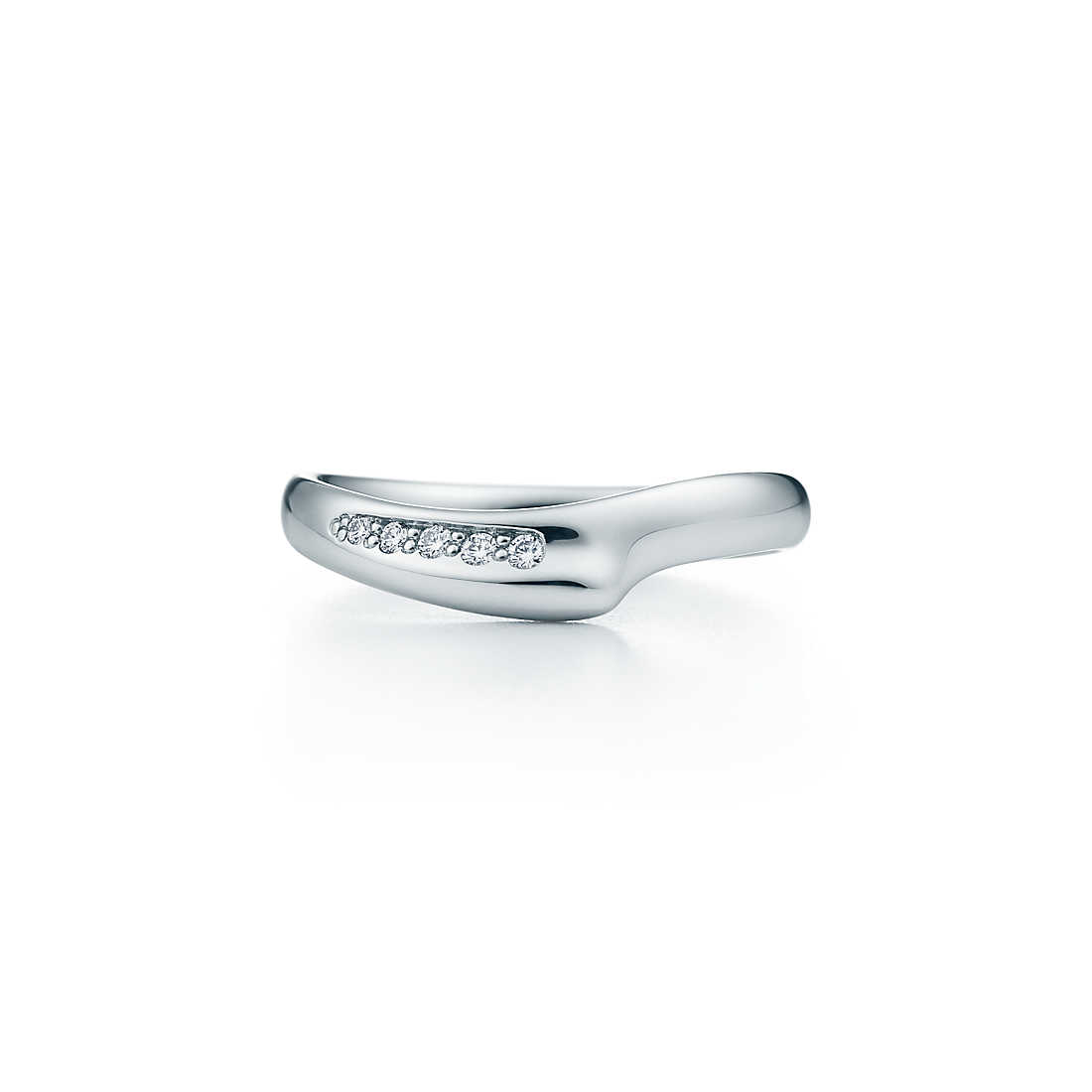 The simple, evocative shape of Elsa Peretti Open Heart designs celebrates the spirit of love. Brilliant diamonds highlight the smooth and sensuous shape of this ring.