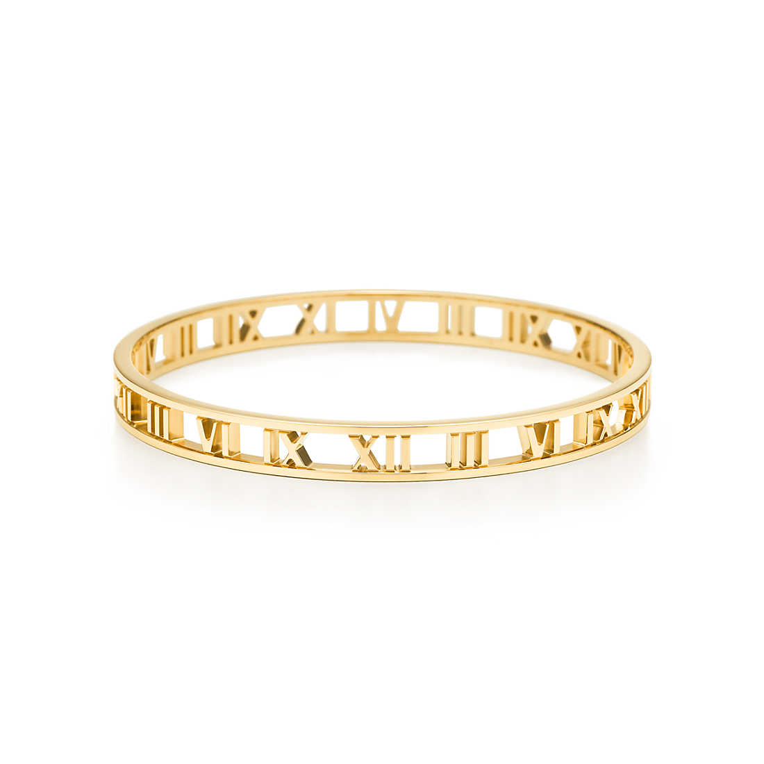 With its bold numeric motif and strong, sleek lines, this collectsion honours one of Tiffany’s most celebrated symbols. Bangle in 18k gold. Size medium, fits wrists up to 6.25″ in circumference.
