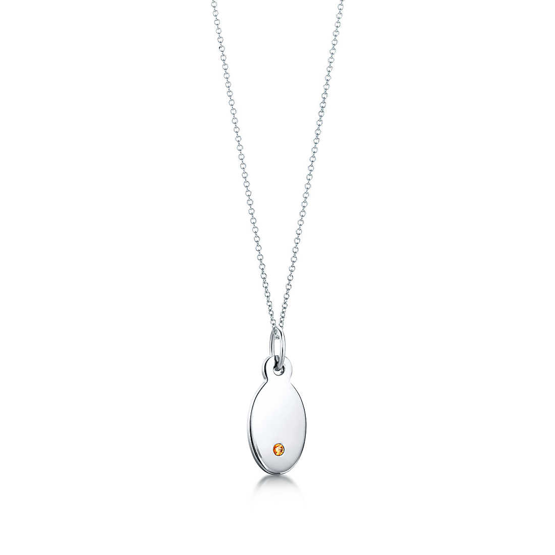 Inspired by archival Tiffany price tags, Tiffany tag charms serve as the perfect canvas for your unique story. Shining with a spessartite that represents self-confidence, this simple and engravable charm is a modern classic.