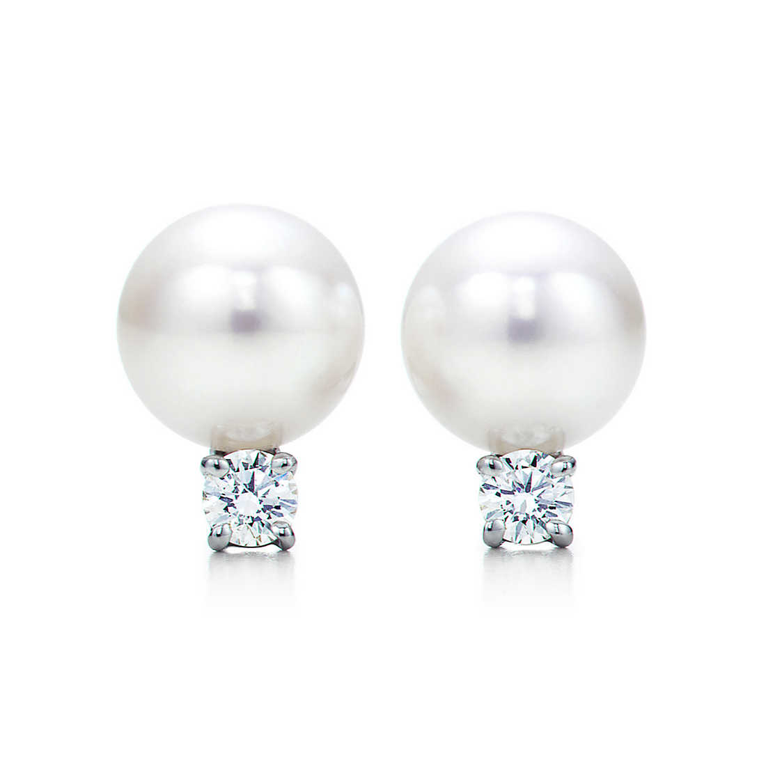 Earrings in 18k white gold with Akoya cultured pearls and round brilliant diamonds. Pearls, 6.5-7 mm. Carat total weight .10.