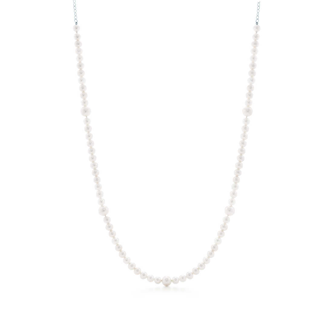 Inspired by Tiffany creations from the 1920s, this collectsion echoes the bold and lavish design of the iconic Ziegfeld Theatre and the elegance of the Jazz Age. This simple strand of pearls exudes timeless sophistication.