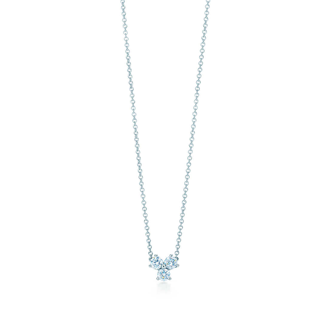 A triad of brilliant diamonds set in perfect harmony. Pendant of round brilliant diamonds in platinum. On a 16” chain.