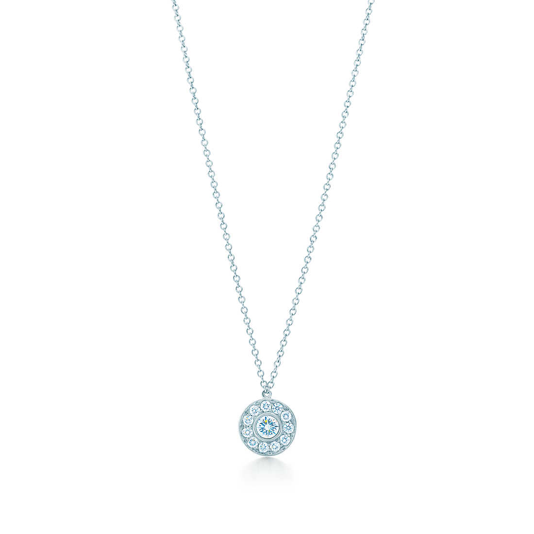 Circles of diamonds in timeless elegance. Pendant of round brilliant diamonds in platinum. On a 16” chain.
