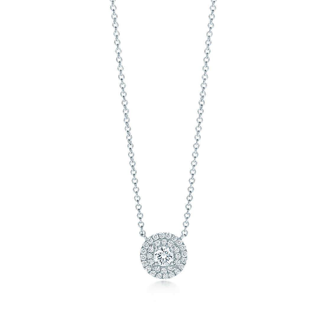 Pendant in platinum with round brilliant diamonds. On a 16″ chain. Carat total weight .30.