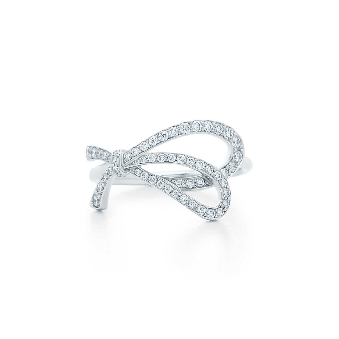 Evocative of a slender thread one might tie around one’s finger to remember something—or someone—Tiffany Bow is a charming symbol of our most important ties. Feminine in form, modern in design, this asymmetrical ring features diamonds hand-set by Tiffany master craftsmen.