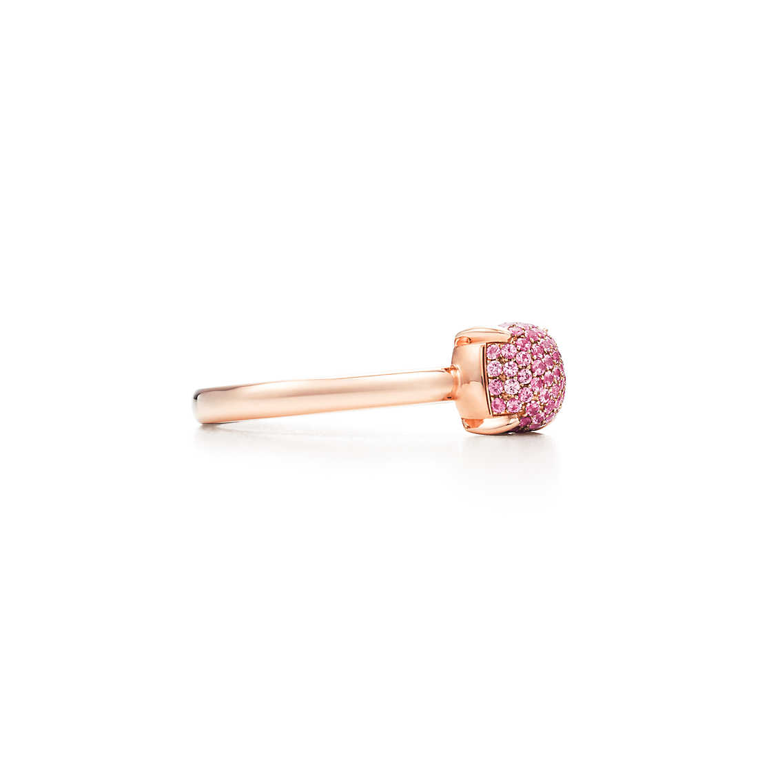 Luscious colours, designed to be stacked or worn alone. In 18k rose gold with pavé pink sapphires. Carat total weight .29. Original designs copyrighted by Paloma Picasso.