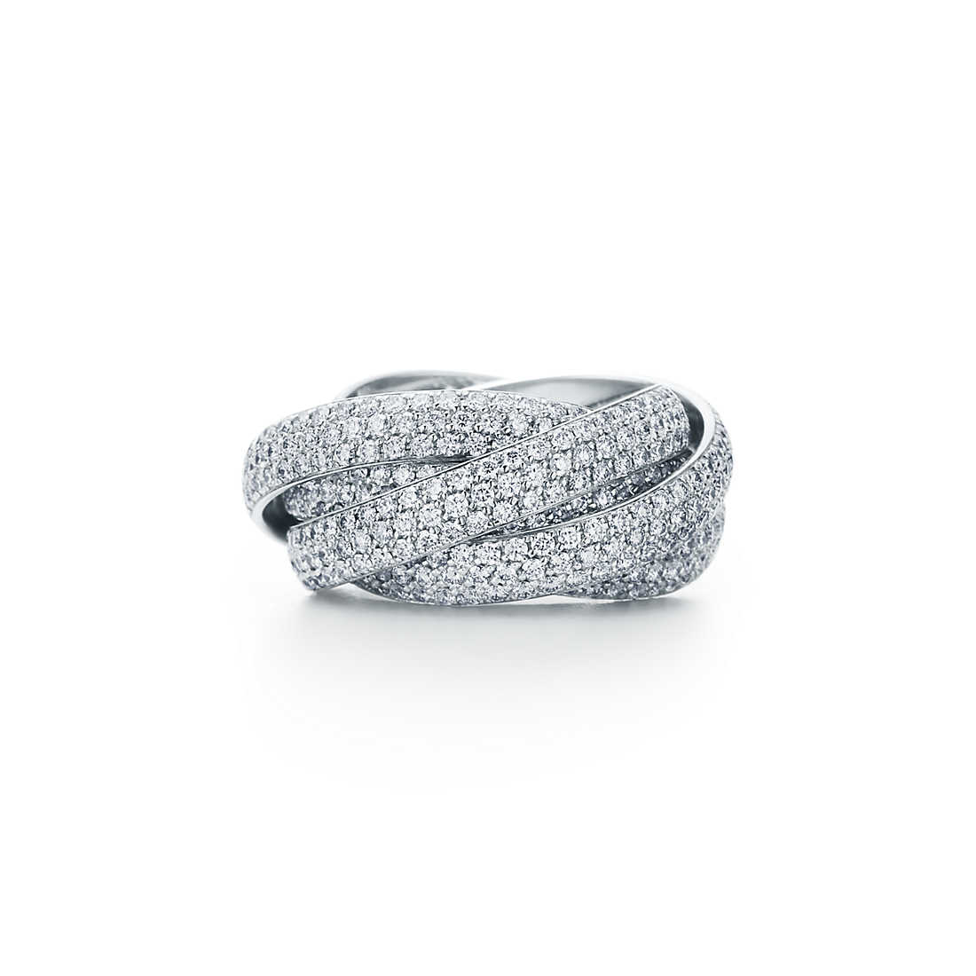 The lyrical Paloma’s Melody collectsion is crafted from interlocking bands that gently shift shape as they glide with the body, always falling back together as a whole. Dazzling diamonds trace the five bands of this stunning ring.